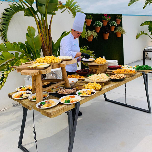 De la mano del chef Raúl Riquleme la cocina del Los Jardines apuesta claramente por la calidad. Sobre esa calidad, creamos una puesta en escena reflejo de nuestra identidad propia. Además nuestas estaciones harán que tu cocktel de bienvenida tenga una personalidad notoria y distinguida.